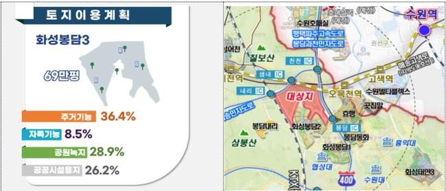 화성봉담3지구 토지이용계획 및 위치도